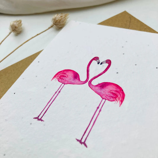 Einpflanzbare Karte aus handgemachtem Saatpapier | Ich liebe dich Flamingo